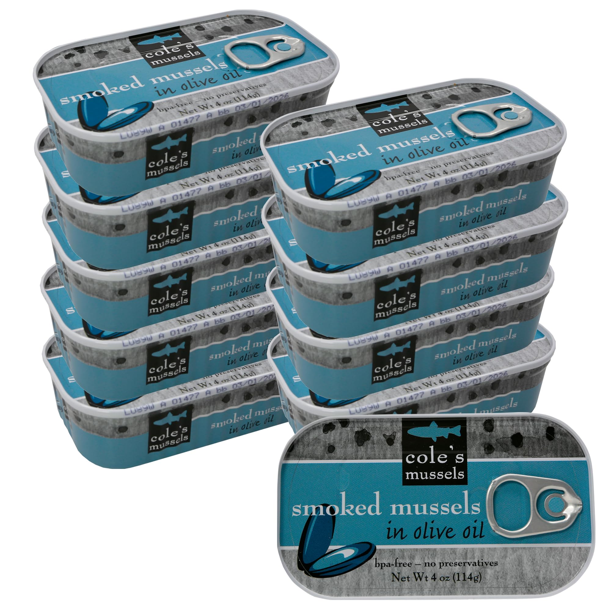 COLES Smoked Mussels in Olive Oil – 4 oz Canned Mussels, Wild Caught in Chile, High in Protein & Nutrients, Premium Quality Seafood – 10 pack|Food Items
